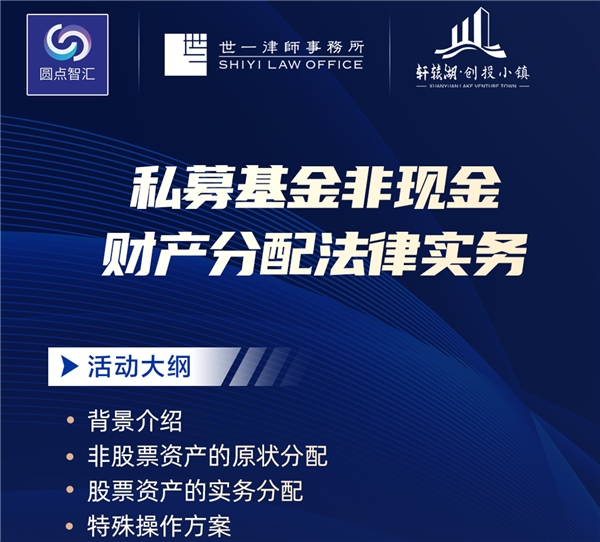 据了解,私募基金非现金财产分配是私募基金退出方式之一,但与非现金分配相协调的规范体系还有待完善。而充分了解其法律实务便成为其实操上的前提。鉴于此,轩辕湖创投小镇联合圆点智汇、世一律所,以“私募基金非现金财产分配法律实务”为题,举办了一场讲座。