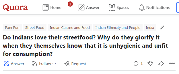 〓 翻译过来就是:为什么印度人明知街头小吃不卫生,仍然要赞美它?/Quora