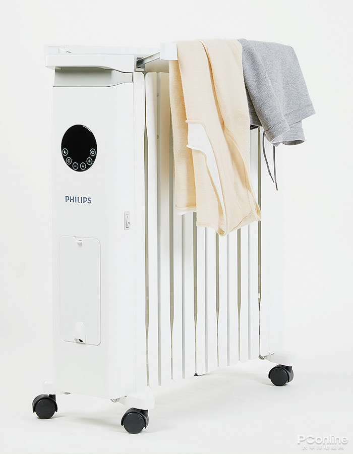 与前两款产品一样,我们在使用电热油汀取暖器时应特别注意与散热片保持距离,想要晾衣服的话也需选购自带烘衣架的产品,千万不可以将衣物直接盖在取暖器上。