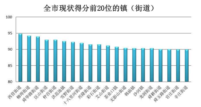 进入全市现状排名前20名的镇(街道)中,市中区4个,南部山区3个,莱芜区、钢城区、商河县各2个,历下区、槐荫区、天桥区、历城区、章丘区、平阴县、高新区各1个。现状排名正数第1至20位分别为西营街道、柳埠街道、舜华路街道、匡山街道、仲宫街道、洪范池镇、雪野街道、十六里河街道、兴隆街道、彩石街道、艾山街道、茶业口镇、无影山街道、韩庙镇、沙河镇、龙洞街道、舜耕街道、舜玉路街道、官庄街道、辛庄街道。