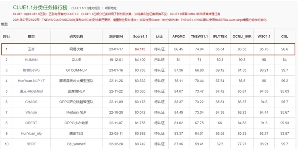 据悉,网易伏羲的“玉言”系列大规模预训练模型,1月17日在中文语言理解领域最权威的评测CLUE(中文语言理解测评基准)1.1分类任务排行榜中总分超越其他模型,在OCNLI自然语言推理等6个中文理解任务上,荣登榜单第一,均分首次超越了人类。