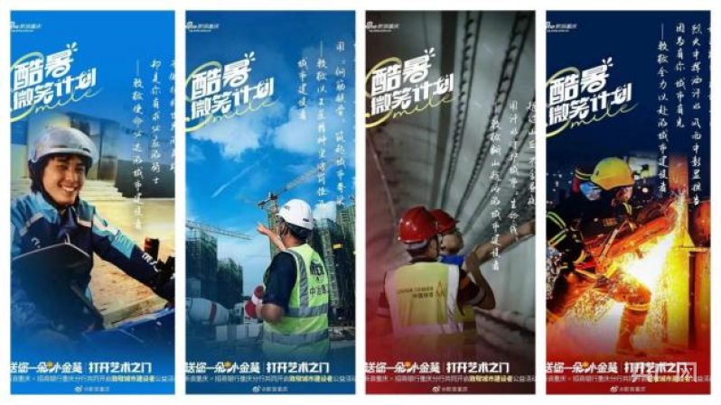 近日,招商银行重庆分行“送你一朵小金葵”第二期“致敬城市建设者·打开艺术之门”公益活动拉开序幕,联合新浪重庆同步发起的“酷暑微笑计划”旨在致敬始终坚守在岗,艰辛付出的城市建设者。