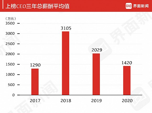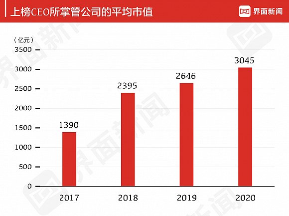 50位最佳CEO所在的上市公司,有42家在内地上市,5家在香港上市,3家在美国上市,平均市值3045亿元,相比去年增长15.12%,而他们最近三年从上市公司领取的总薪酬的平均值为1420万元,相比去年降低了30.01%。