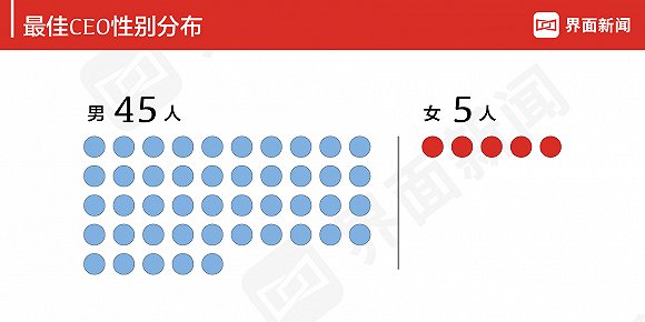本次上榜的50位最佳CEO,平均年龄53岁,最年轻的CEO是视源股份的总经理刘丹凤(37岁)。除了具备优秀的管理能力和丰富的商场经验,CEO们还普遍受到过较高水平的教育,29位CEO拥有硕士及以上学位。最佳CEO榜单中有五位女性,相比去年增加一位,占榜单总人数的10%。