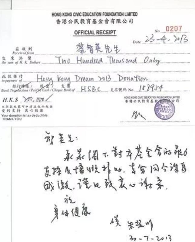 在2014年香港“占中”事件中,就有媒体通过黎智英的邮件披露其资助除“占中三丑”戴耀廷、陈健民、朱耀明,同时还被曝出资助陈日君、陈方安生及李柱铭等。在2013至2014年间,陈方安生三次收受“祸港四人帮”黎智英捐赠的巨额“政治黑金”350万港币,助其继续从事乱港活动。