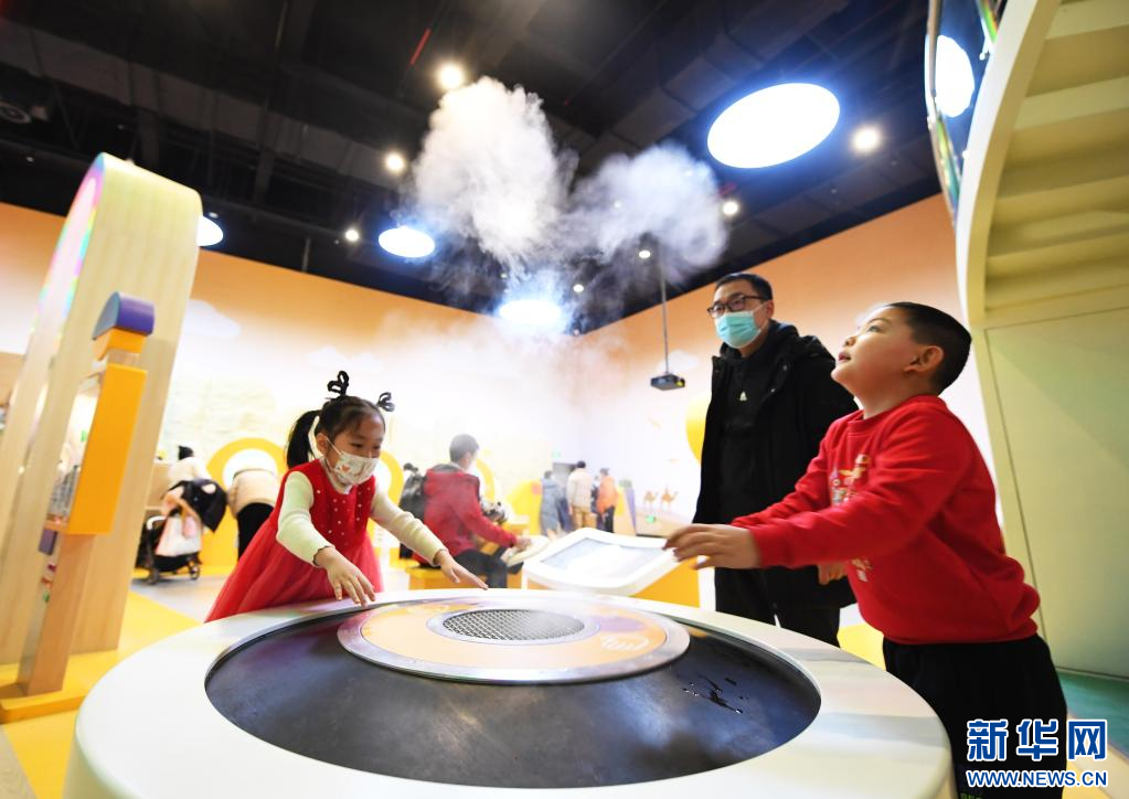 1月27日,小朋友在河南省科技馆新馆“童梦乐园”展厅体验科技项目。当日是春节假期最后一天,许多市民和学生走进河南省科技馆新馆,感受科技魅力,丰富假期生活。