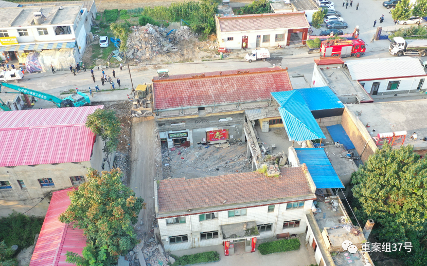 8月30日上午,新京报记者来到事发的襄汾县陈庄村聚仙饭店,该饭店靠近马路,斜对面是陶寺乡派出所。现场救援人员已经撤离,有抢修电力的工作人员还在工作,石块等建筑废料堆在饭店对面的空地上。