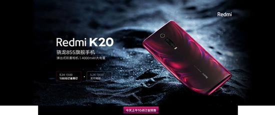 5月24日消息,小米商城预告红米K20系列将在今天上午10点开启100元订金预售(5月28日18:00支付尾款),关于该机价格暂未公布。