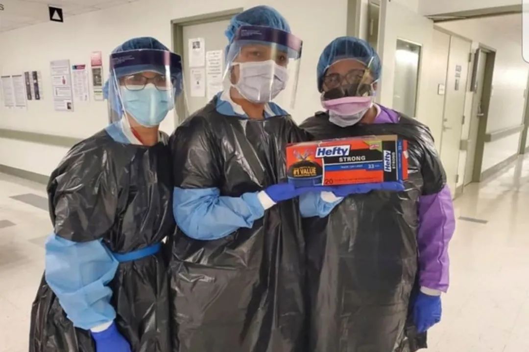 疫情大爆发时,西奈山的一名护士Diane Torres在Facebook上 张贴了一张与同事穿着垃圾袋制作的防护服的照片,以抱怨医院个人防护设备不足的现象 。没想到收到了主管的一顿痛骂。
